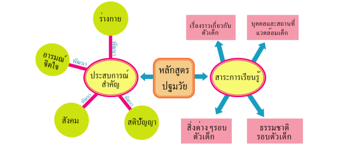 สาระการเรียนรู้ คือ หัวข้อหลักที่นักเรียนจะได้เรียนรู้ผ่านกิจกรรมในแต่ละสัปดาห์ โดยหัวข้อของสาระการเรียนรู้ แบ่งเป็น เรื่องราวเกี่ยวกับตัวเด็ก, บุคคลและสถานที่แวดล้อมเด็ก, สิ่งต่างๆรอบตัวเด็ก และ ธรรมชาติรอบตัวเด็ก