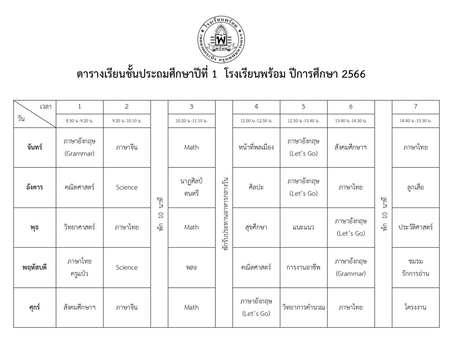 โรงเรียนพร้อมยึดหลักพัฒนาการและการเรียนรู้ที่สอดคล้องกับความต้องการของนักเรียนแต่ละวัยเป็นสำคัญ ประสบการณ์ของนักเรียนเกิดขึ้นได้จากการเรียนรู้ ผ่านการเล่น และ ลงมือปฏิบัติจริง เพื่อให้ สอดคล้องกับหลักสูตรการศึกษาปฐมวัย พ.ศ. 2546 จึงกำหนดโครงสร้างหลักสูตรการศึกษาปฐมวัยของ โรงเรียนพร้อม ดังนี้